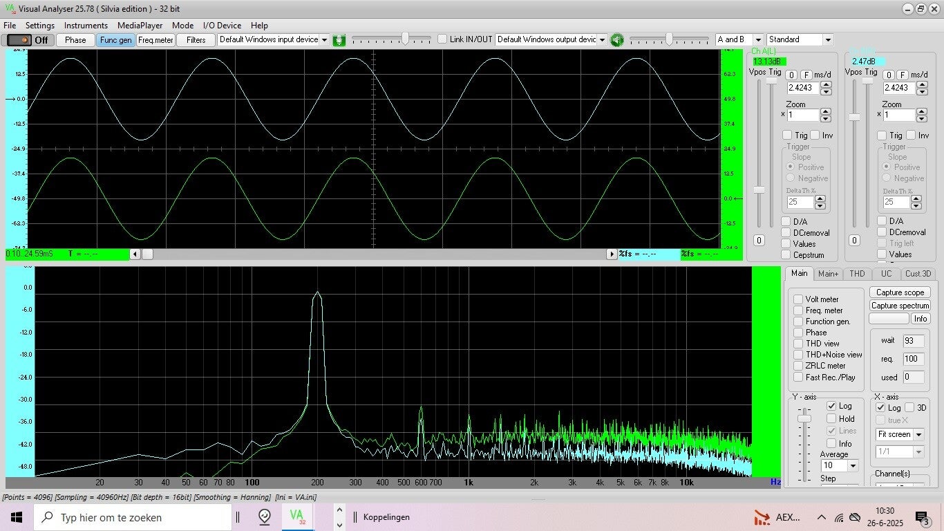 Met een computerprogramma heb ik een 200 Hz signaal ingesteld.